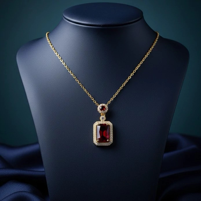 گردنبند جواهری تک نگین قرمز استیل رنگ ثابت ضد حساسیت مناسب یلدا و هدیه کد 05