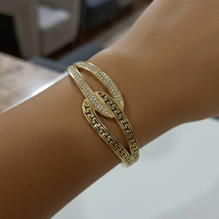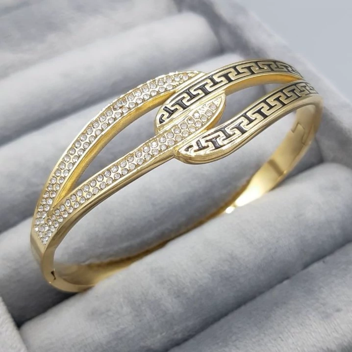 دستبند النگویی استیل طرح طلا، رنگ ثابت و ضد حساسیت با آبکاری مشابه طلا طرح ورساچه