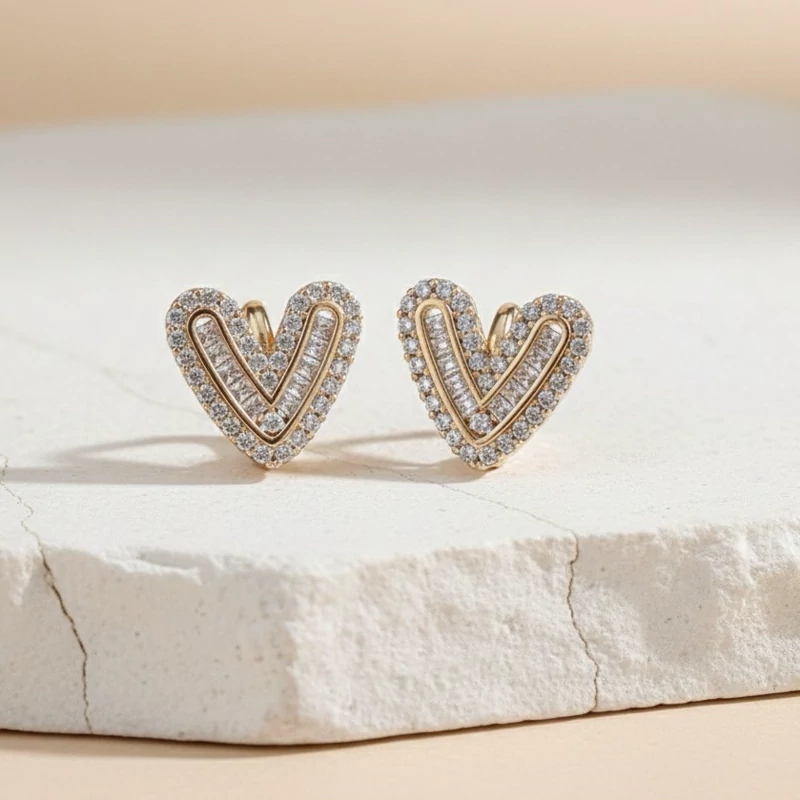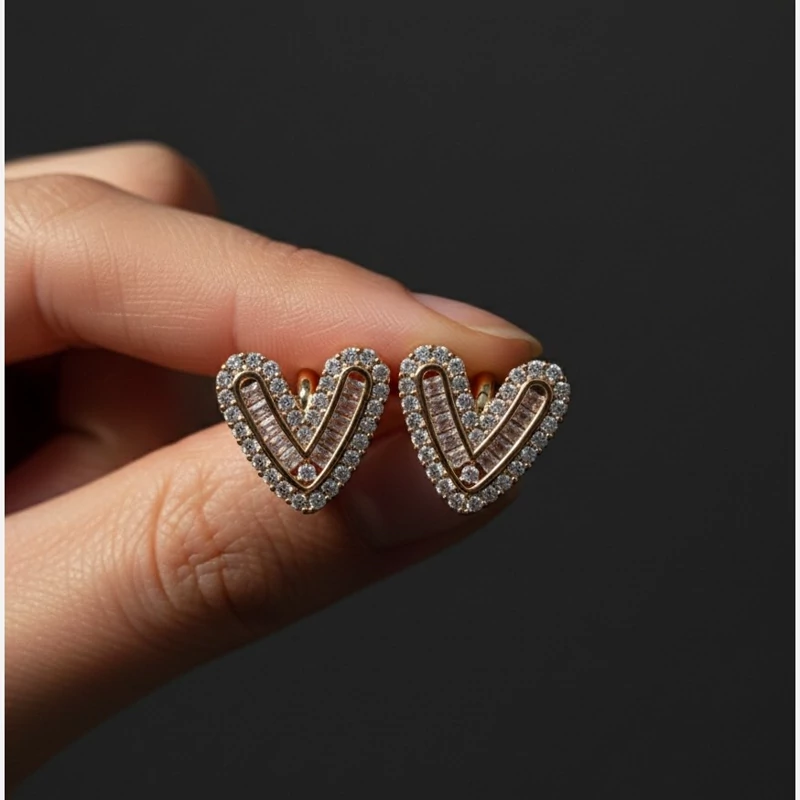 عشق و درخشش در یک قاب! این گوشواره با طراحی خاص قلبیشکل، نمادی از ظرافت و زیبایی است.