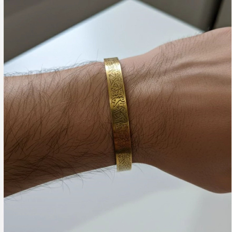 بنگل مردانه دستبند مردانه استیل دستبند مذهبی آیت الکرسی مارک رنگ طلایی