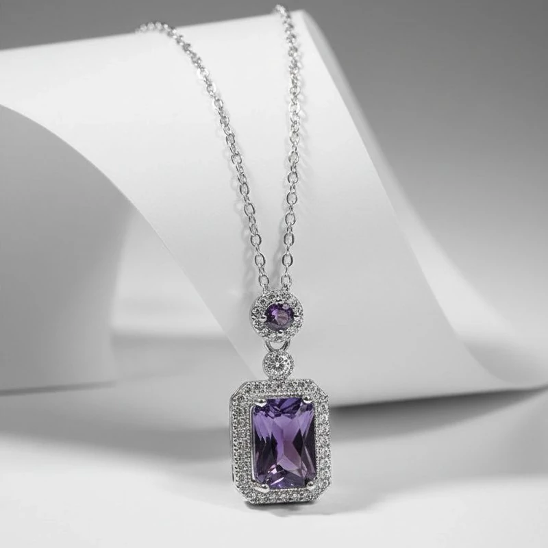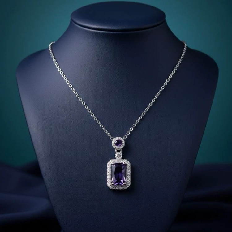 گردنبند جواهری تک نگین بنفش استیل رنگ ثابت ضد حساسیت مناسب یلدا و هدیه کد 120
