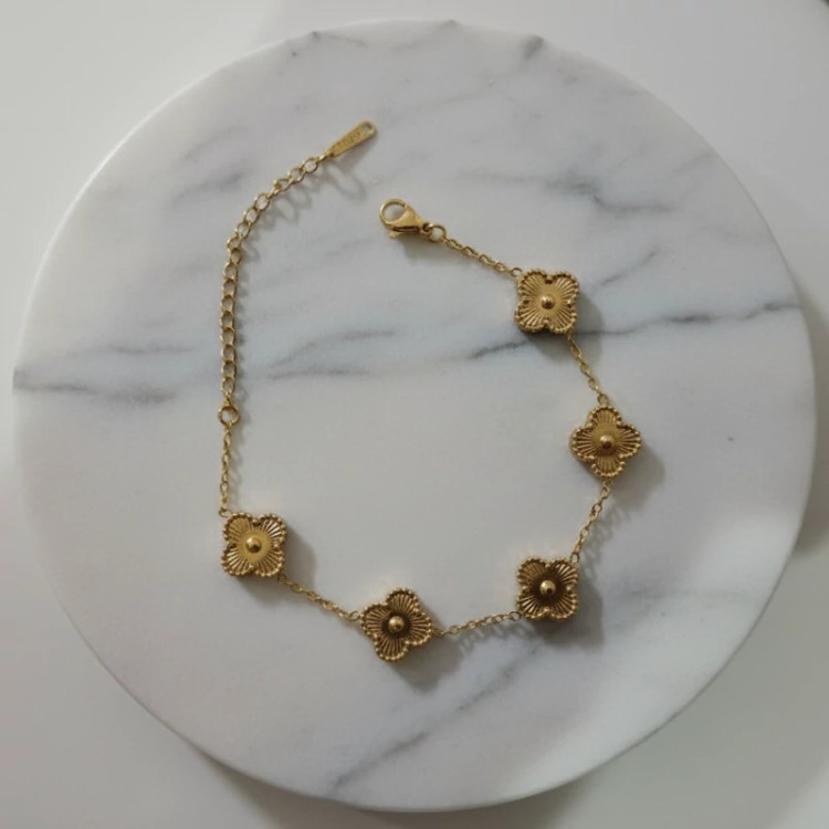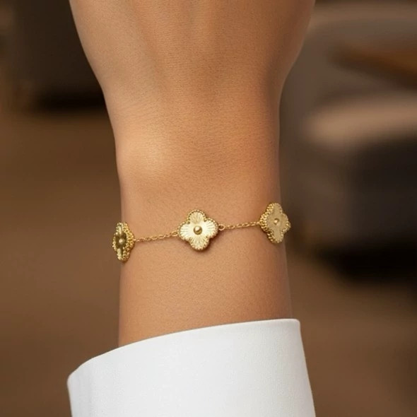 این دستبند زیبا با طراحی الهامگرفته از طرح معروف ونکلیف (Van Cleef)، جلوهای خاص و شیک به استایل شما میبخشد.