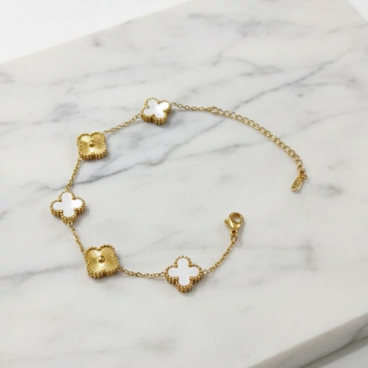 این دستبند زیبا با طراحی الهامگرفته از طرح معروف ونکلیف (Van Cleef)، جلوهای خاص و شیک به استایل شما میبخشد.