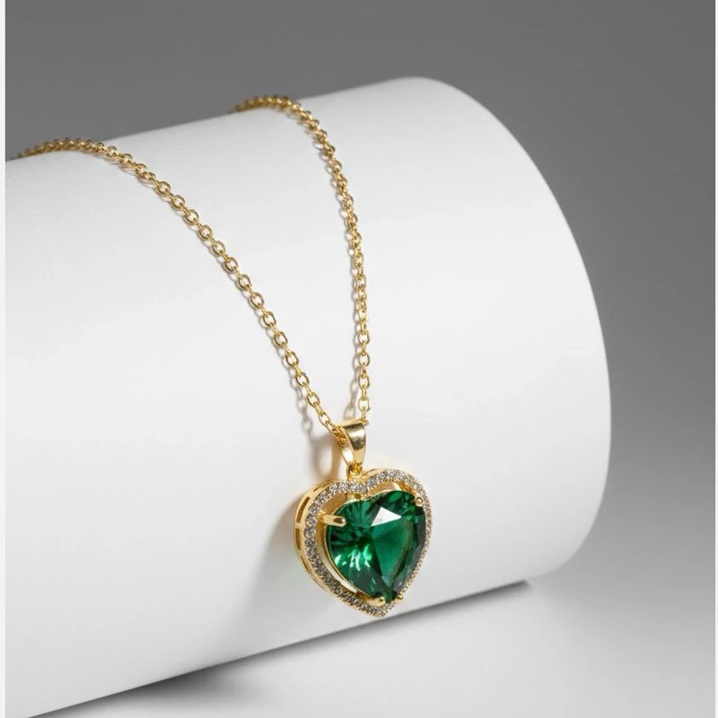 گردنبند جواهری تک نگین سبز استیل رنگ ثابت ضد حساسیت مناسب یلدا و هدیه کد 110