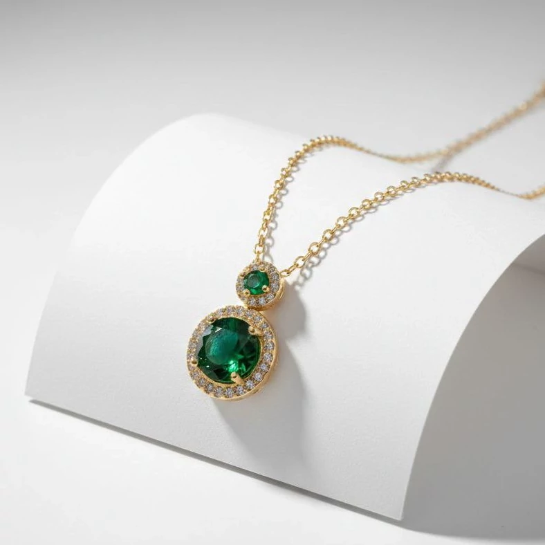 گردنبند جواهری تک نگین سبز استیل رنگ ثابت ضد حساسیت مناسب یلدا و هدیه