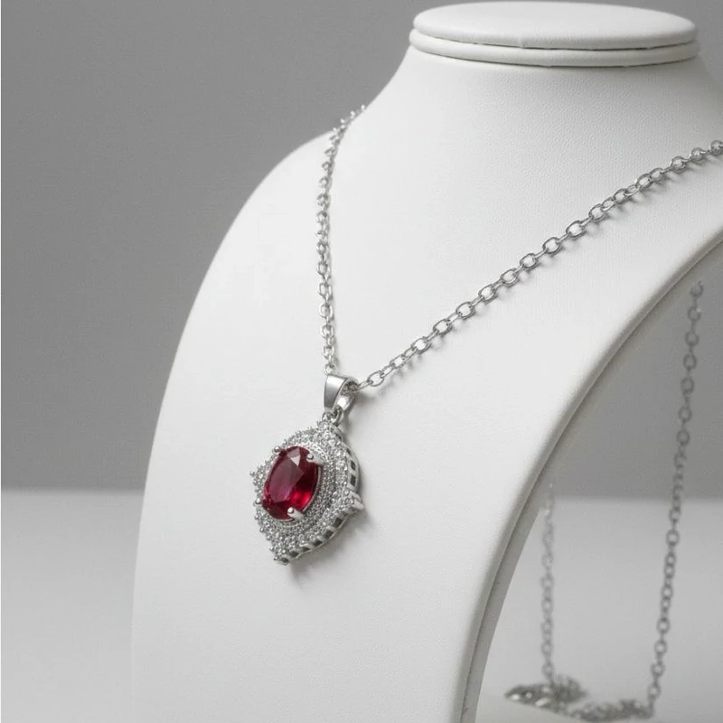 گردنبند جواهری تک نگین قرمز استیل رنگ ثابت ضد حساسیت مناسب یلدا و هدیه کد 115
