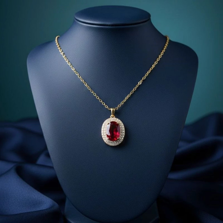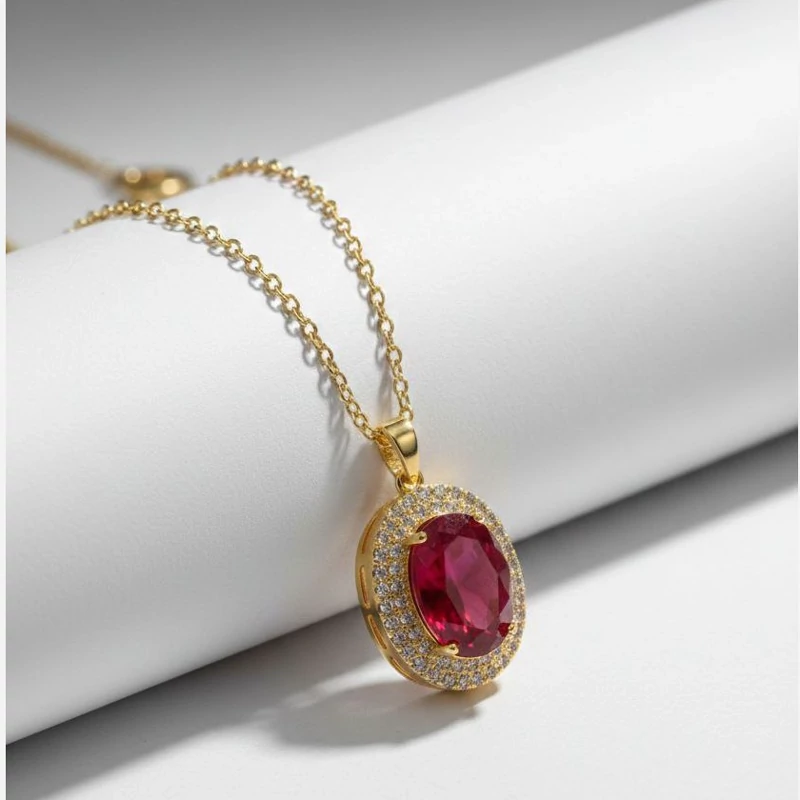 گردنبند جواهری تک نگین قرمز استیل رنگ ثابت ضد حساسیت مناسب یلدا و هدیه کد 116