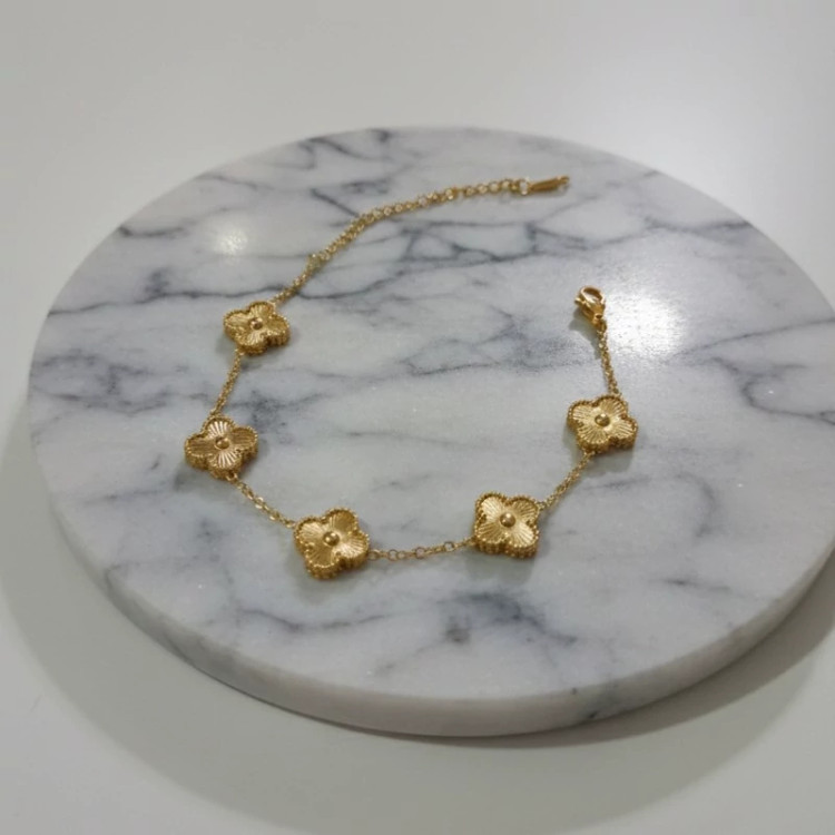 این دستبند زیبا با طراحی الهامگرفته از طرح معروف ونکلیف (Van Cleef)، جلوهای خاص و شیک به استایل شما میبخشد.